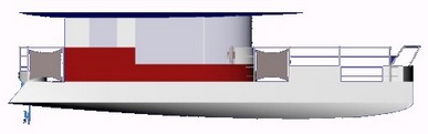 The ferry L = 10m; B = 3m, v = 14km / h; Pm = 2x7kW; Range about 100km is intended as a sea or river ferry for up to 20 people.
